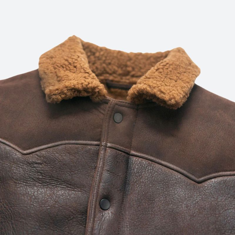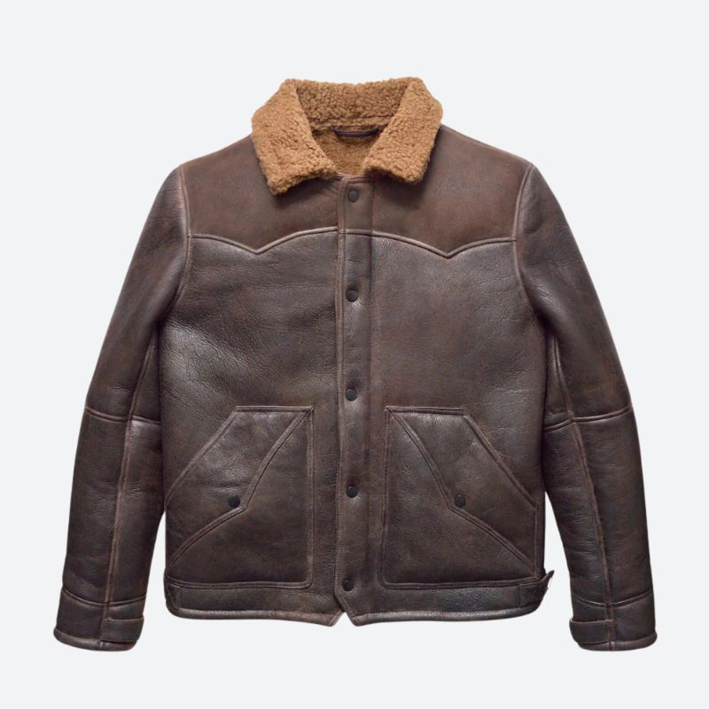 The Jackson Shearling Leather Jacket blends classic Western vibes with cozy Turkish sheepskin. With its unique two-tone yoke, brass hardware, and comfy shearling collar, this jacket’s all about authentic style and warmth for every adventure.