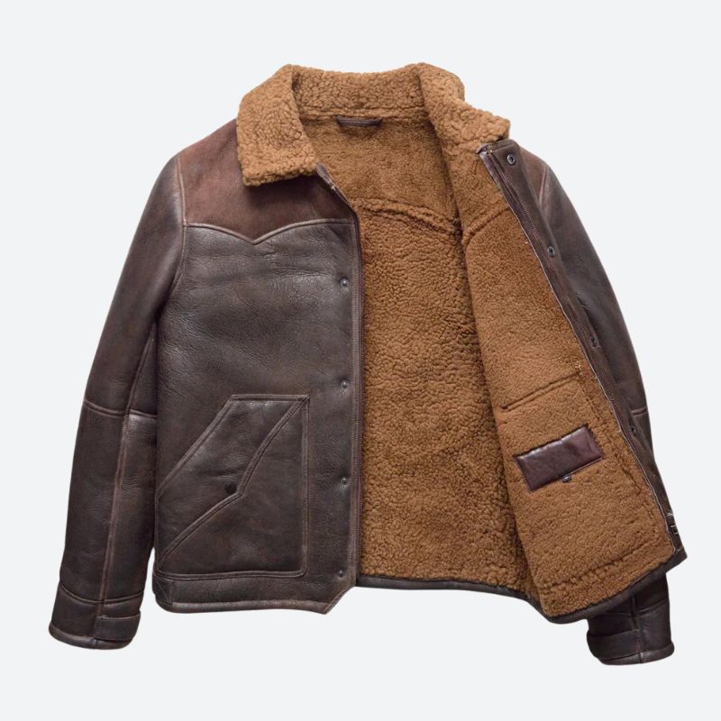 Meet the Jackson Shearling Leather Jacket—a piece that’s all about timeless style with a touch of the wild West. This jacket is crafted from soft, premium Turkish sheepskin wool that keeps you cozy without weighing you down. The rich, two-tone brown leather yoke gives it that unique character you don’t often find, and the antique brass zippers add just the right hint of rugged charm.